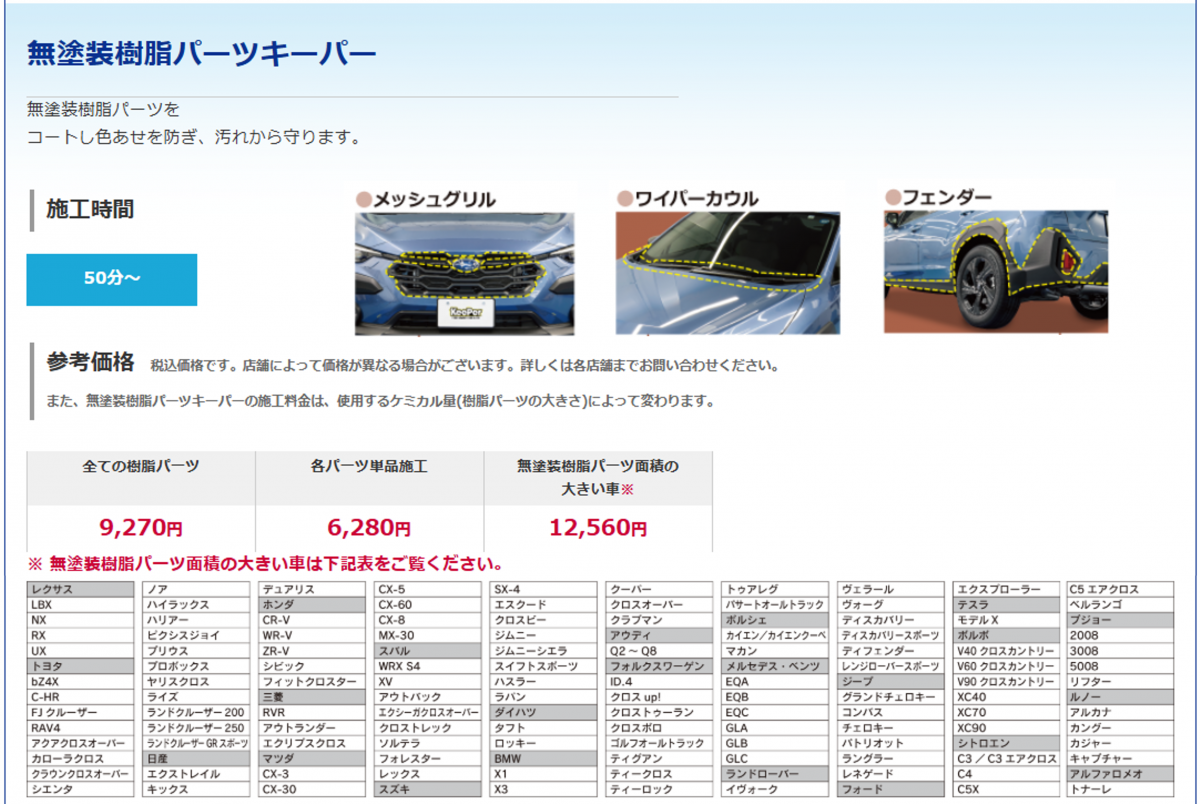 車種分類表に基づきサイズ分けを行っています。旧型式の車も現行型のサイズ分けに準じます。