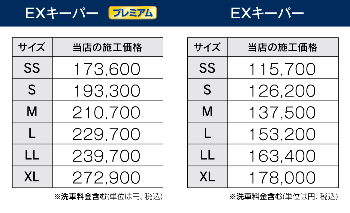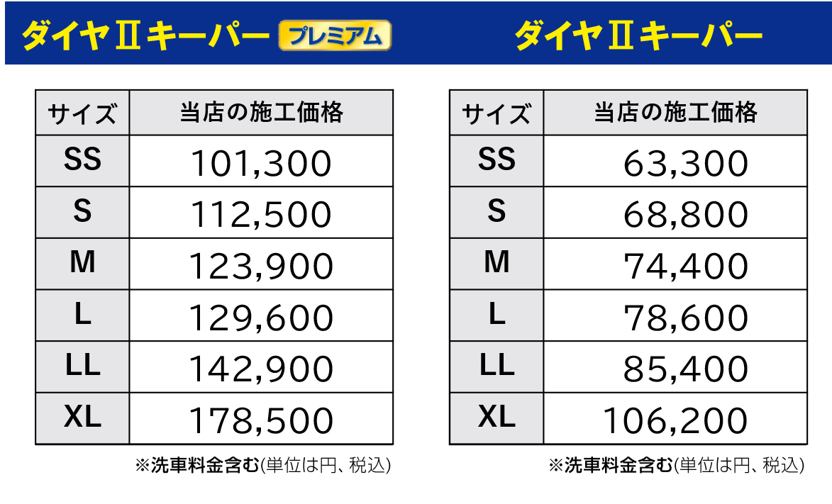 | サイズ | 標準メンテ(税込) | フルメンテ(税込) |