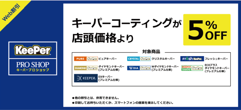 ★Web割引でキーパーコーティングが店頭価格より5%OFF♪