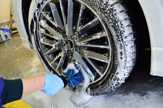プレウォッシュで塗装に触れず6割の汚れを除去し、洗車キズを最小限に抑えます。 ホイール内側をクリーニング、タイヤハウスをツヤ出しで足元から美しく!