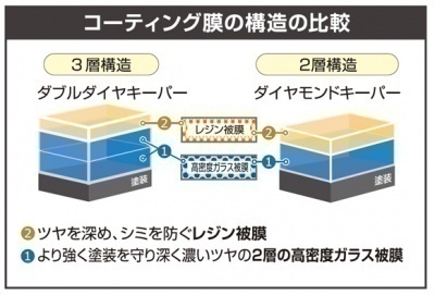 ダブルダイヤキーパーは、キレイさだけではありません。 汚れがダントツにつきにくく、コーティングにより水シミも固着しません