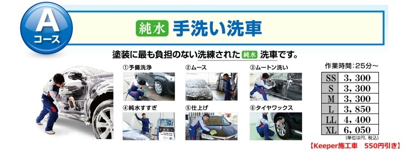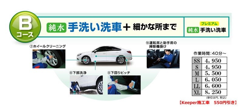 ※プレミアム純水手洗い洗車(Bコース)ミネラルオフ(Cコース)に含まれてます