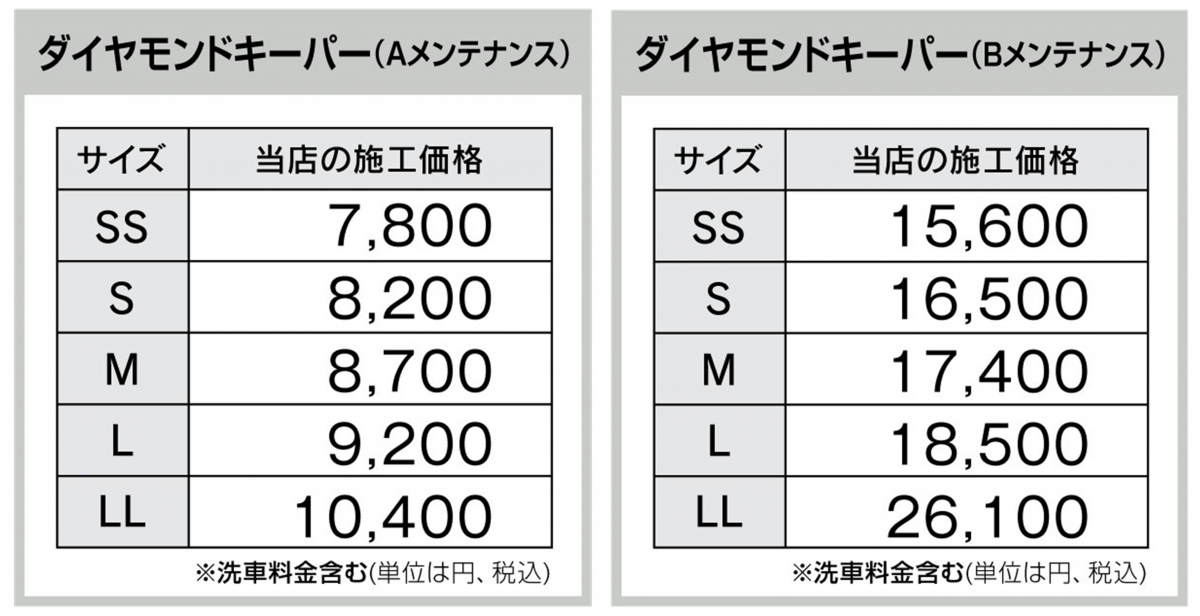 当店ではキーパーコーティング全商品(ガラスコーティング)に 施工証明書・点検洗車カードを発行しています。