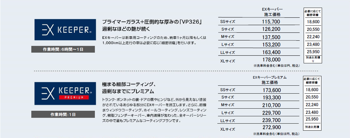 A.当店はキーパーラボではございません。しかし、当店は洗車・コーティングをするスタッフは多くがコーティング資格保持者ですし、メニューもキーパーラボ店と同一となっておりますので、ご安心ください!!