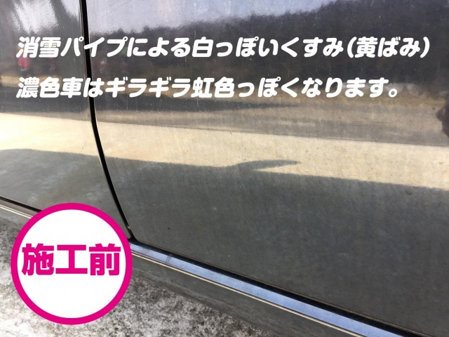 施工前は雪国独特の消雪パイプによる黄ばみ・鉄粉そして花粉などが付着し、かなりの汚れでした。