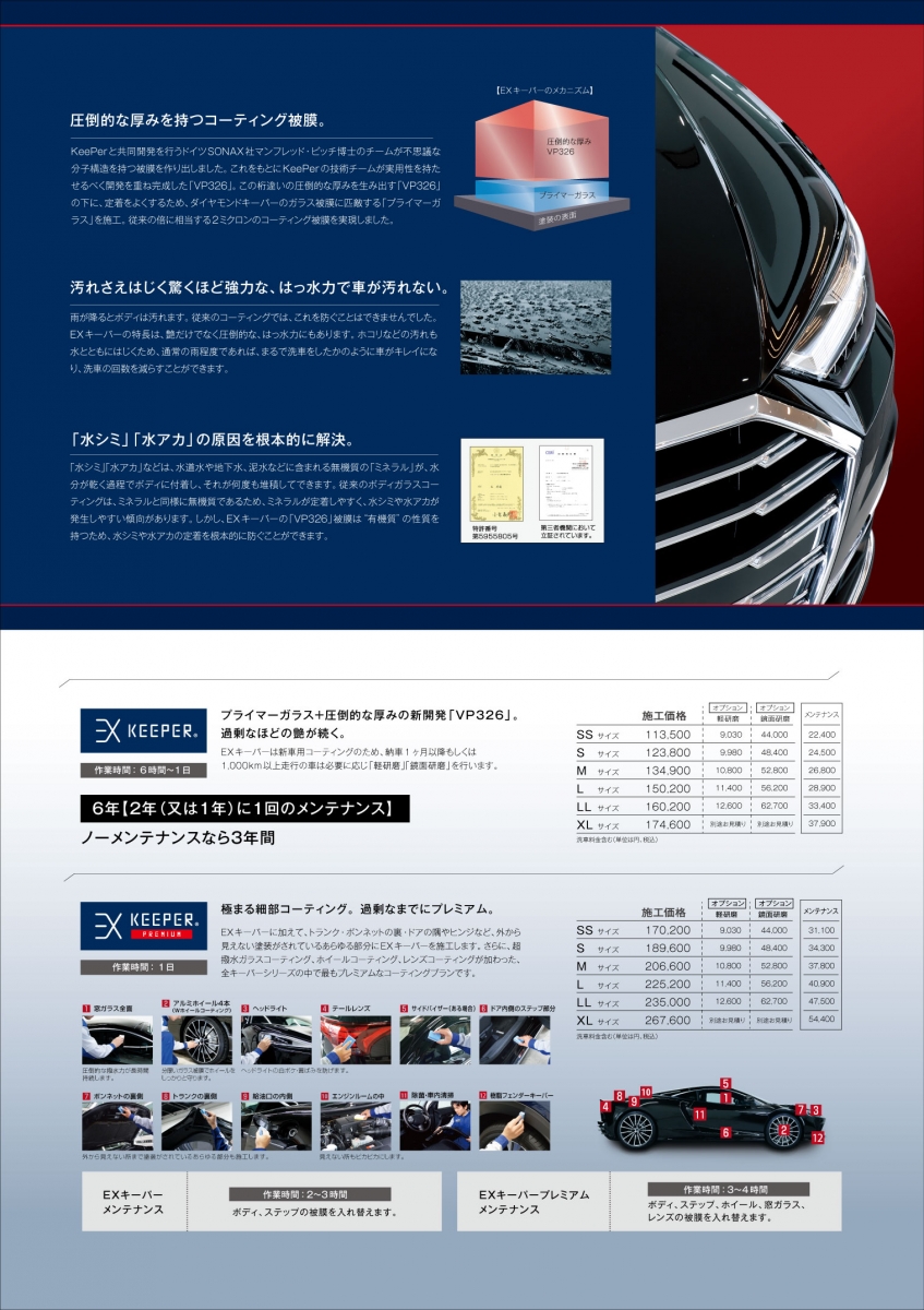 クリスタルキーパーとの大きな違いは、ガラス被膜の密度です。ダイヤモンドキーパーは高密度のガラス被膜でボディをガッチリ守ります。