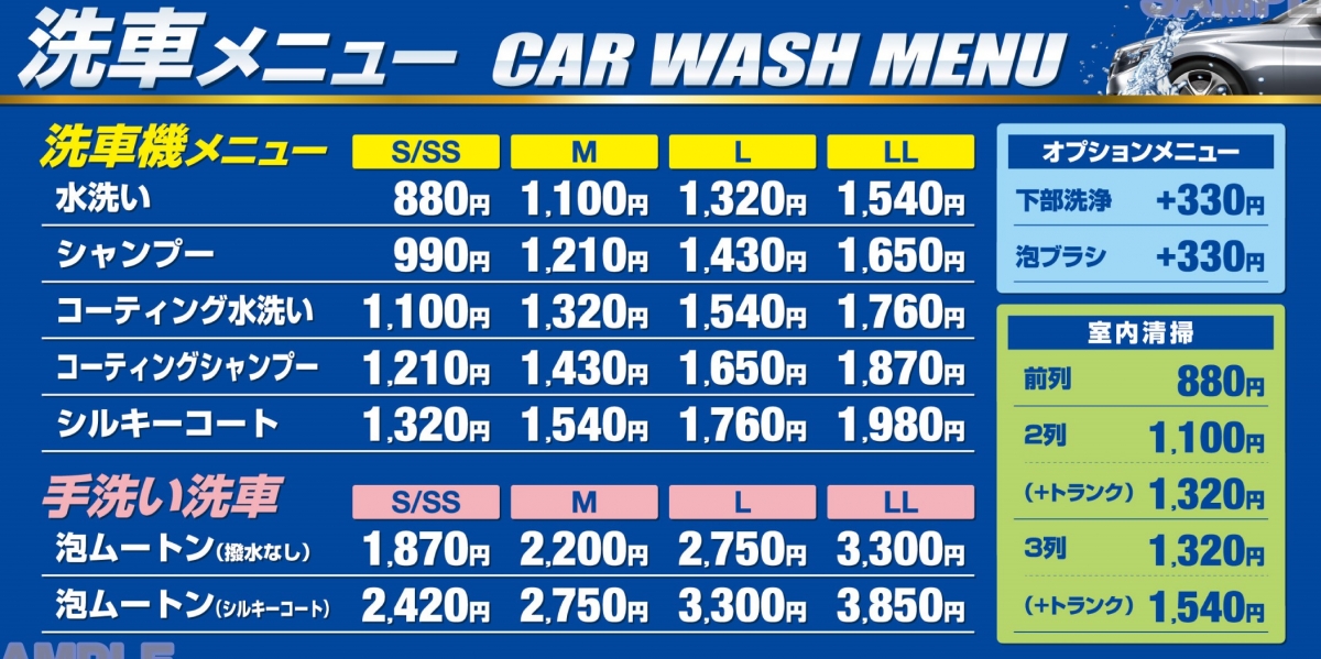 ※価格は消費税+手洗い洗車込みです