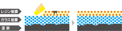 下部のガラス被膜を整え、表面のレジン被膜を入れ替えます。