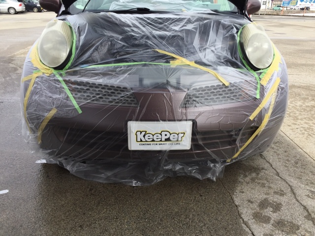 施工前はしっかりとフロント全体をマスキングして施工させて頂きます。