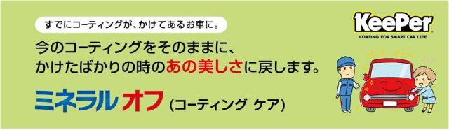 KeePerが新開発した「ミネラル オフ」なら、元々のコーティングは落とさず、水垢などの汚れのみを除去し、コーティング本来の輝きを取り戻せます!