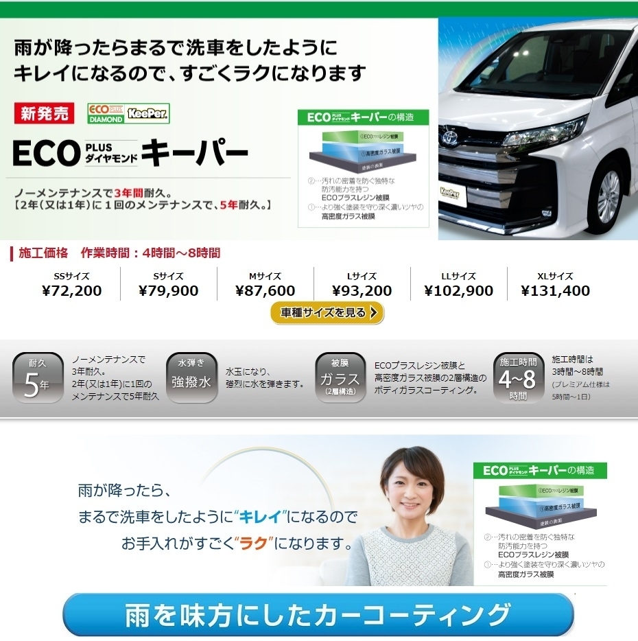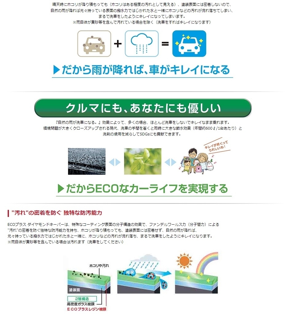 ☆★☆★☆★☆★☆★☆★☆★☆★☆★☆★☆★☆★☆★☆★☆★ ECO PLUS ダイヤモンドキーパー 次世代コーティング 雨上が降るとまるで洗車したようにキレイが続く! ☆★☆★☆★☆★☆★☆★☆★☆★☆★☆