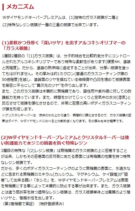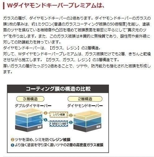 *高密度ガラス被膜の上を最新のレジン被膜でガード。2層構造(ダブルは3層構造)のボディガラスコーティング