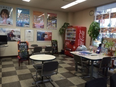 ゲストルームです。お待ちのお客様はこちらでお過ごしください。テレビも設置しておりますので、ご自由にご覧ください。隣にはドラッグストアもありますので、女性のお客様はそちらに買い物に行かれる方もいらっしゃいます。