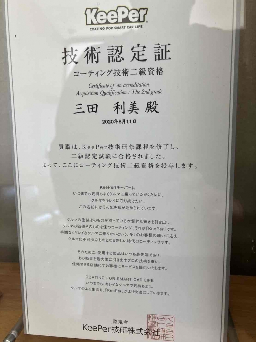 当店では認定を受けた有資格+経験を積んだ技術者がお客様のお車にコーティングを施工いたします。安心してお車をお任せください。