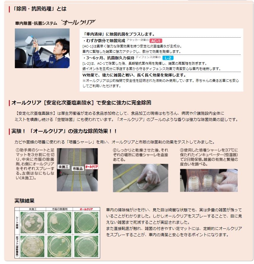 さらに車内清掃に『除菌・抗菌処理』をプラスした