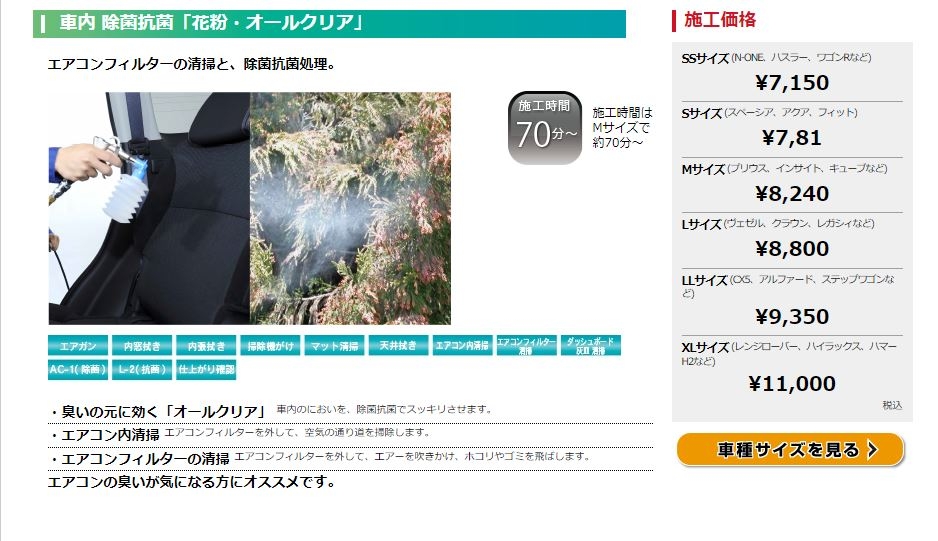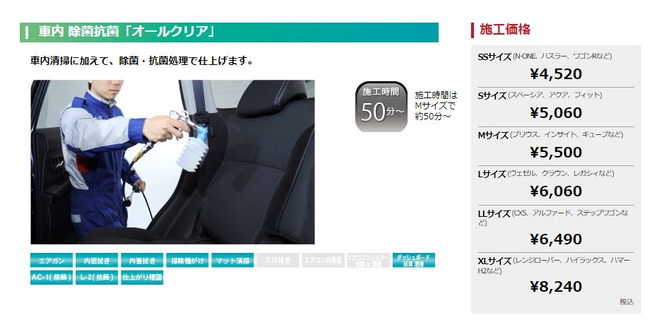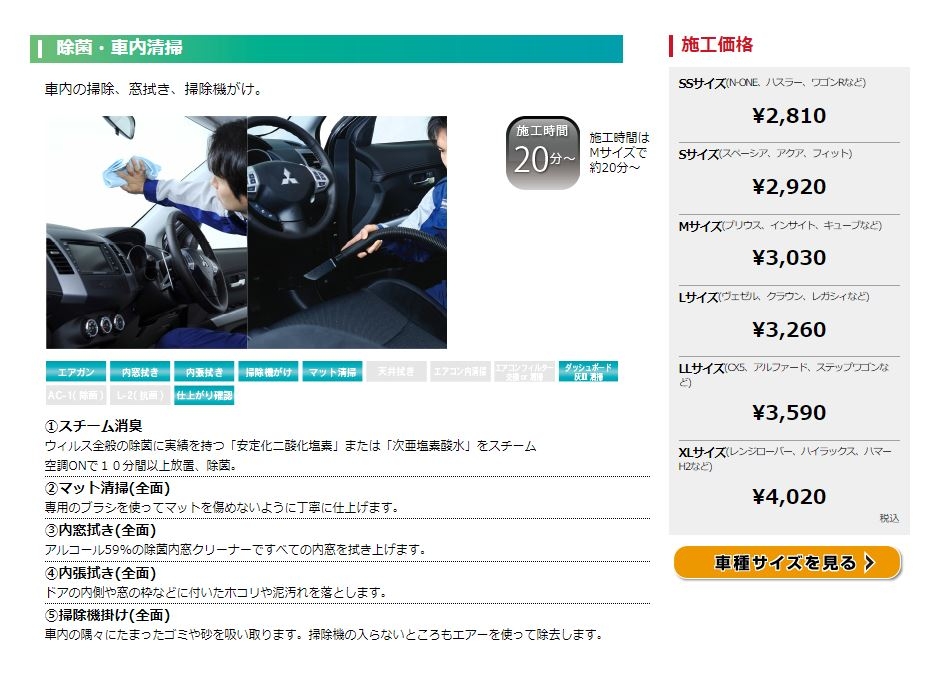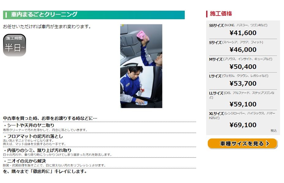『車内まるごとクリーニング』