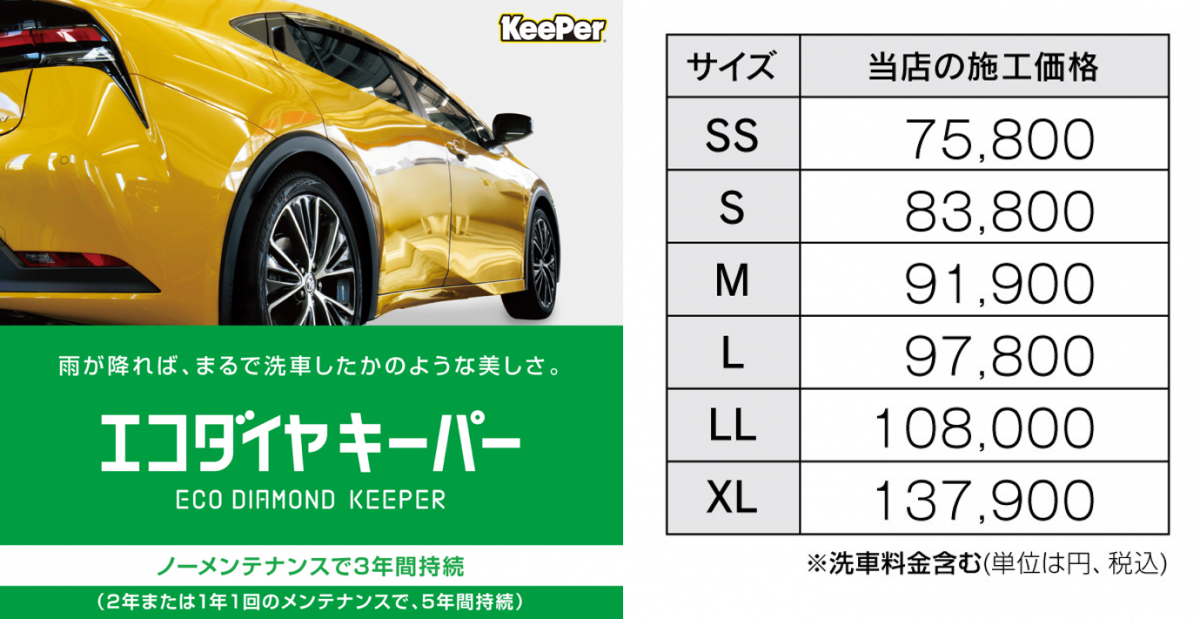 ECOダイヤキーパー・・・ 3年耐久で洗車も楽に。