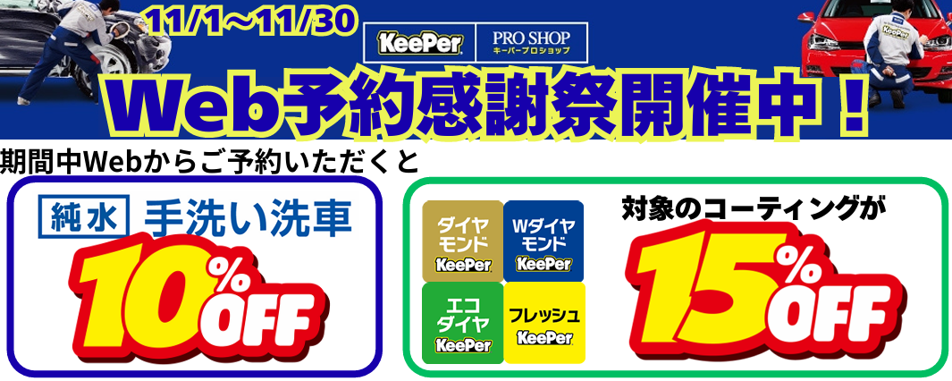 当店でキーパーコーティング、純水手洗い洗車をするお客様にとってもお得なフェアとなっております。