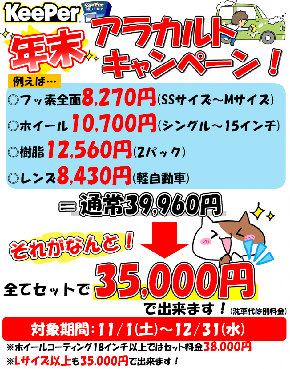 こんにちはキーパープロショップ中津SS山西です。12月が始まりましたが、ご予約がかなり埋まってきております。予定では残りの枠も数台となってますweb予約では入らない日がありますので、一度問い合わせくだ...