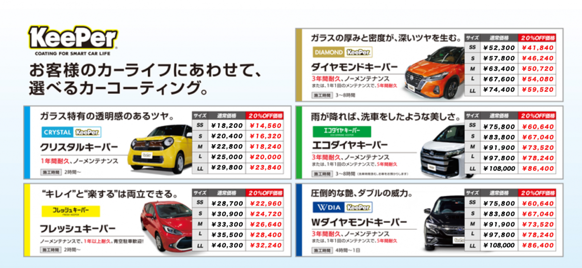 愛車を長くキレイに!キーパーコーティングにお任せください。