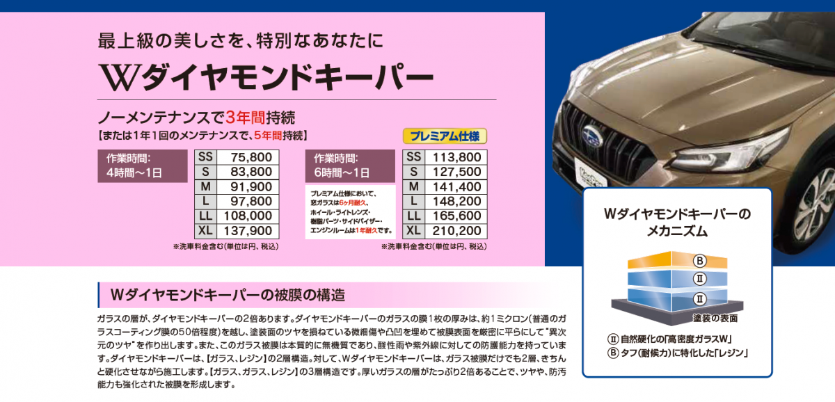 ダブルダイヤキーパーは、高密度ガラス被膜だけでも2層、きちんと硬化させながら施工します。
