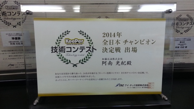 当店はこれまでにkeeperコーティングの技術大会で施工が一番上手い人を