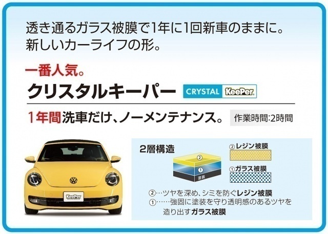 3ヵ月耐久のポリマーコーティングですこちらのメニューは3ヵ月ごとに、繰り返し施工することで、被膜が強くなっていきます。 洗車で落としきれない汚れも取ることができます