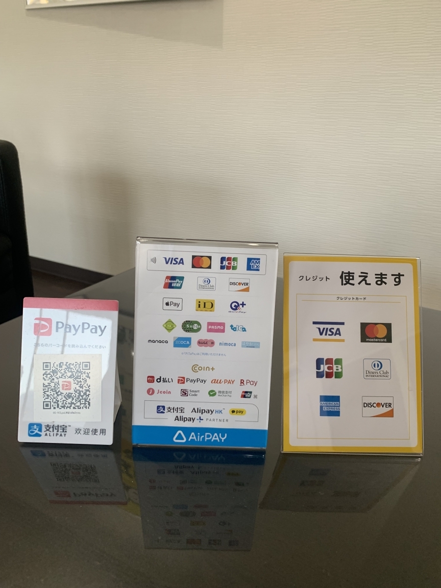 現金払い、各種クレジットカード、電子マネーがご利用いただけます