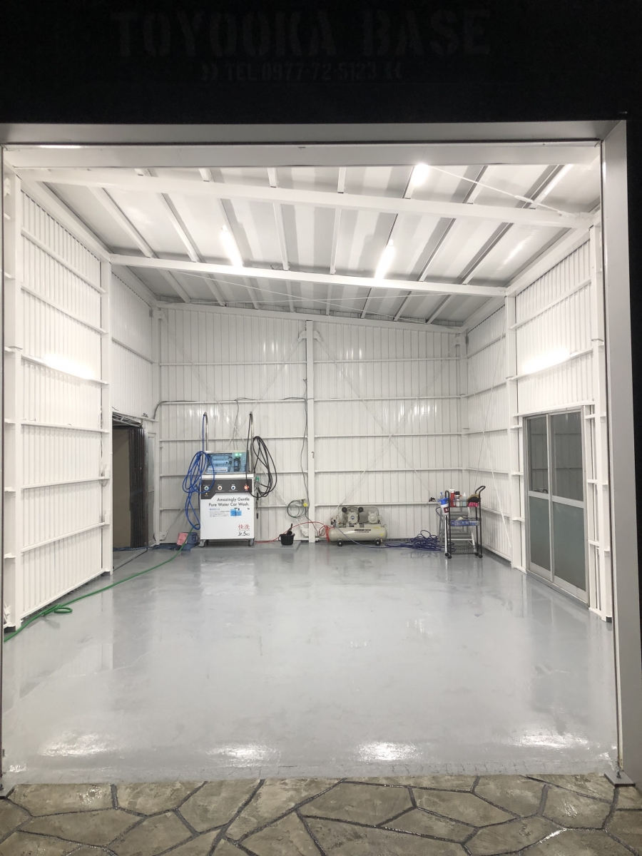 コーティングブースはシャッターがついてますのでコーティング時には完全に閉め切った状態での作業が可能になっております