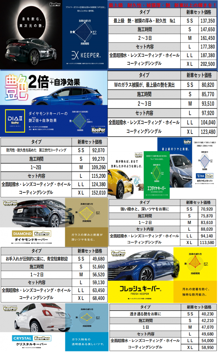 ピュアキーパー・クリスタルキーパー・ダイヤモンドキーパー・Wダイヤモンドキーパーを