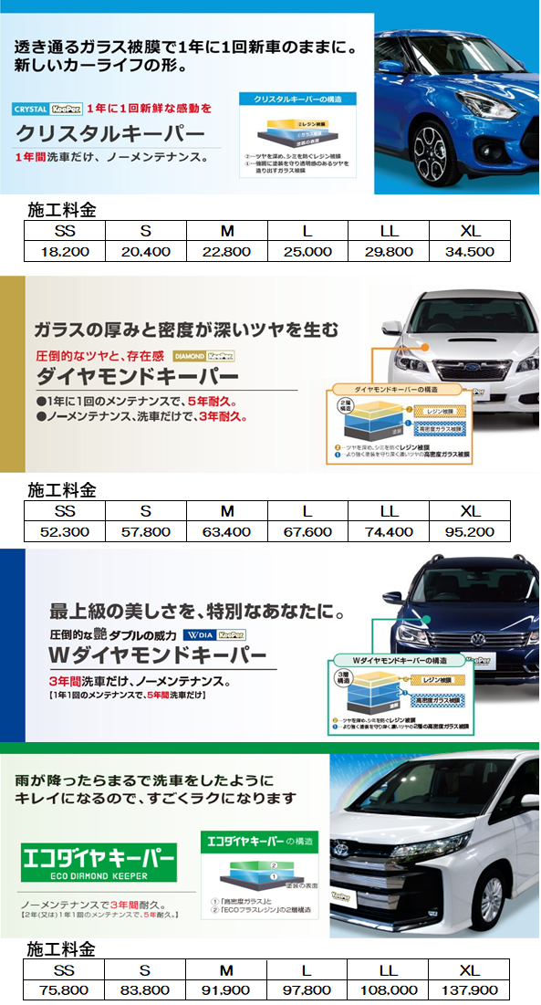 愛車を長くキレイに!キーパーコーティングにお任せください。