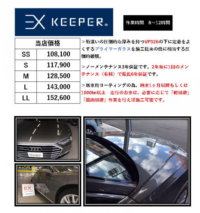 キーパーコーティングでガラス特有の新車を超える程の透明感のある艶へ!