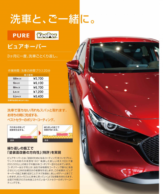 キーパーコーティングは、強力に塗装をガードしていますので、今まで通りの洗車で