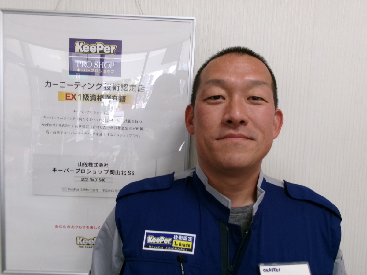 チーフ 西川 誉基 コーティング技術1級 EXキーパー施工資格 2022年キーパー技術コンテスト 岡山県チャンピオン決定戦出場 2023年キーパー技術コンテスト 岡山県チャンピオン決定戦出場 岡山県第3位 2025年キーパー技術コンテスト 岡山県チャンピオン決定戦出場 岡山県第5位