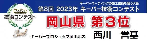 全国のチャンピオンのコーティングの施工を目の前で見学することもでき、とても良い経験ができました。 今回の経験を今後の店舗でのコーティングの施工に生かしていきますので、今後ともキーパープロショップ岡山北店をよろしくお願い致します。
