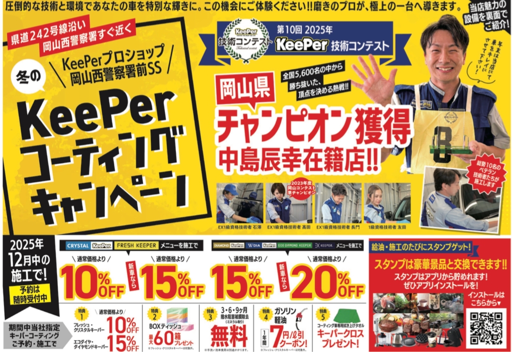 当店には、第10回KeePer技術コンテスト岡山県チャンピオン「中島辰幸」が在籍!