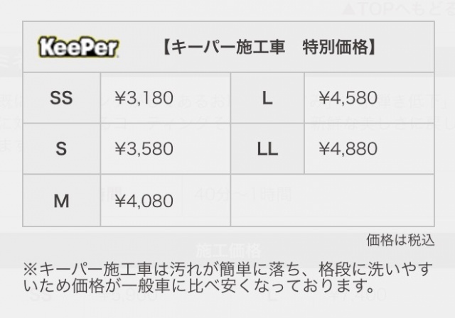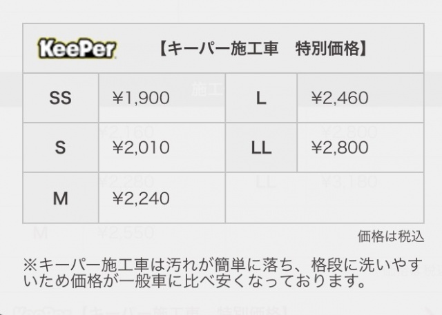 キーパー施工車手洗い洗車プレミアム特別価格