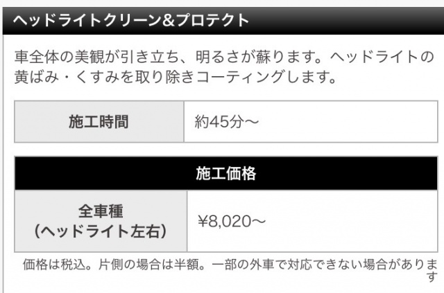 ヘッドライトクリーン&プロテクト