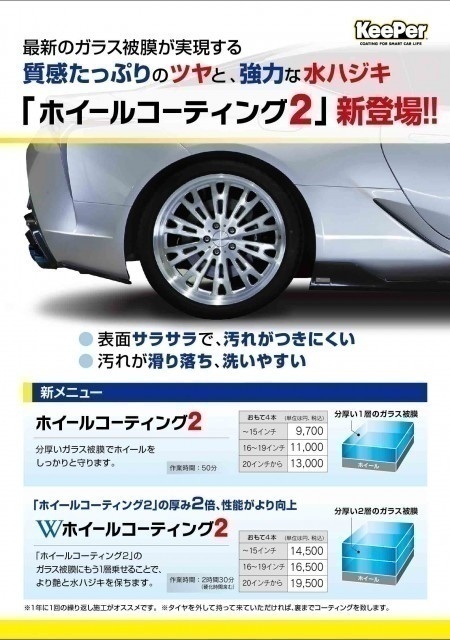 ボディを3層構造のWダイヤモンドキーパープレミアムで守り、 ボンネット、トランクの裏、ドアヒンジ、塗装してある部分を全てコーティングします。 新車時に、お車を全てコーティングしたい!!! 今お乗りのお車を、隅々までリフレッシュしたい!!! 「せっかくだから全部」は、 ?ダブルダイヤキーパープレミアム?がおススメです♪
