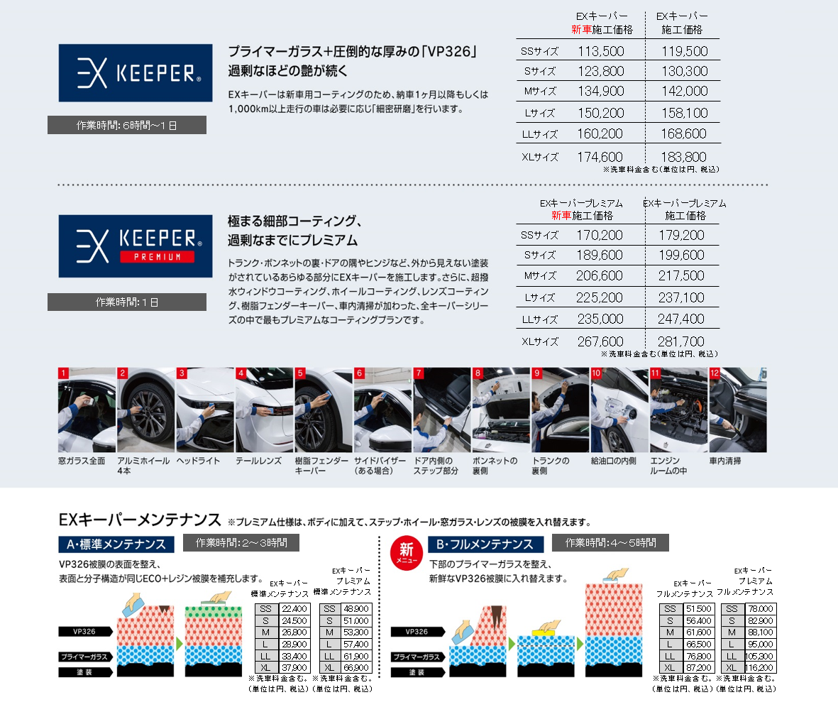 なお、当店ではEXキーパーのみ上記の割引対象外となっておりますので、その他のコーティングはすべて割引対象とさせていただきます。