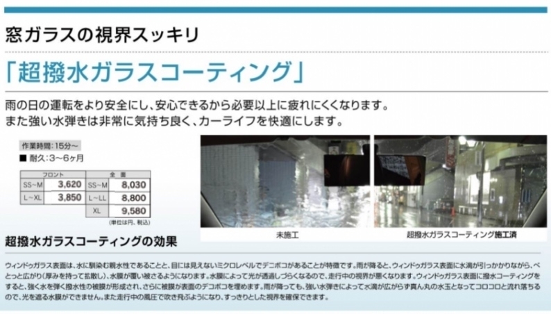 こんなにキレイになるんです!! 気になっている方はぜひスタッフにご相談下さい!! 金額は¥8,580で、お時間は約45分ほどかかります。 (雨天時はコーティングの定着の為、さらに1時間程頂きます。) ※一部対応できない車種もございます。※レンズの内側の汚れは除去できません。