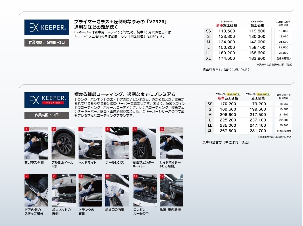 ※効果・持続期間は目安です。あらゆる実車状態・使用状況での効果・持続期間の確認はしておりません。