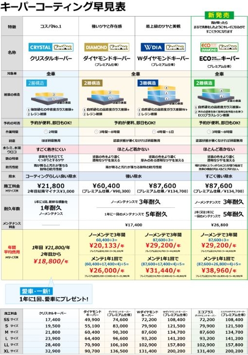 3層コーティングのダブルダイヤキーパーは5年シリーズの人気商品。