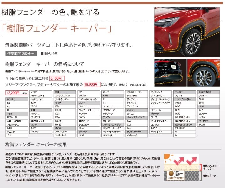 色あせを防ぎ、汚れから守る! 樹脂フェンダーキーパー