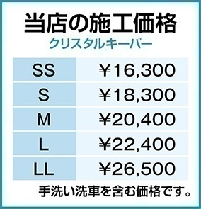 もちろん、クリスタルキーパーにもオプションとしてお付けすることができます。一度研磨してクリスタルキーパーをしてあげれば、コーティング前の下処理でキレイになり、更にクリスタルキーパーのキズ埋め効果でツヤが格段に強調されピッカピカになります!そして、2回目(1年後)3回目(2年後)の施工の時には、よっぽどの事がないかぎり研磨の必要はなく、クリスタルキーパーの施工のみでピッカピカになります♪