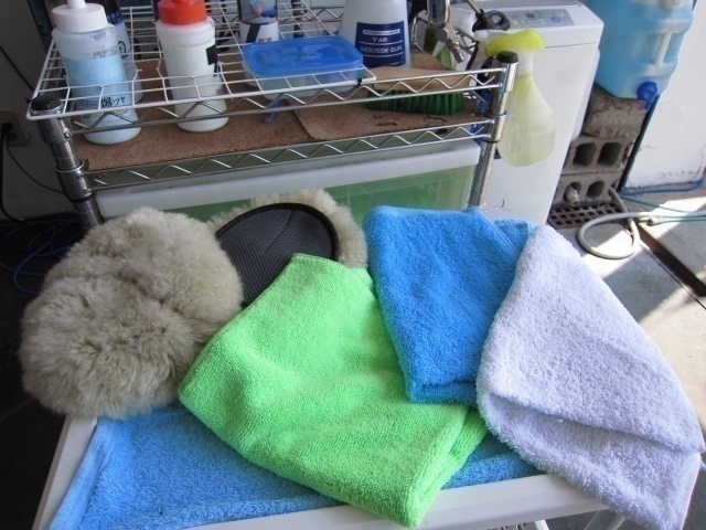 待合室目の前で洗車しています。店内から洗車の様子をご覧いただけるのでご安心です。 お客様の大切なお車を傷つけないために、ふわふわのムートングローブで優しく洗車し、ボディ拭き上げ用のファイバークロス、窓用タオル、ホイール・ステップ用タオルを使い分けております。