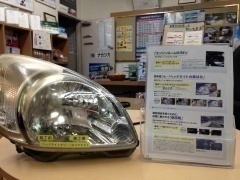 ヘッドライトクリーンプロテクトを施工した、ディスプレイも展示しております^ ^
