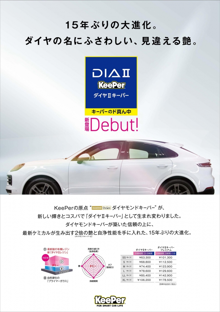 新商品登場につきましてR8年 1月よりコーティングラインナップが EXキーパー DIAⅡキーパー フレッシュキーパーの3種類になります。