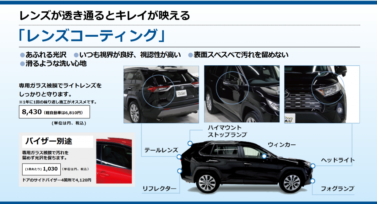 新車納車時、登録済車、経年車のリフレッシュなど、お客様にぴったり合った商品を
