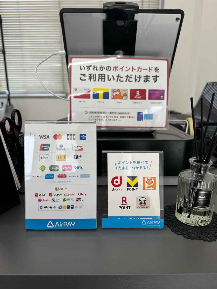 A.各種クレジット、ご利用頂けます。 現金、一部クレジットカードはTポイント・楽天ポイント・dポイントが貯まります!QRコード決済も可能です。ⅾ払い・paypay・aupay・Rpay などご利用できます。